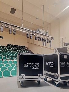 В этом проекте наша компания впервые выполнила полный цикл работ по проектированию и внедрению электроакустики для концертного зала. Специалисты «ТехноСонус» установили и настроили всё необходимое мультимедийное оборудование: современную систему звукоусиления, аппаратуру для обработки и качественного воспроизведения звука.